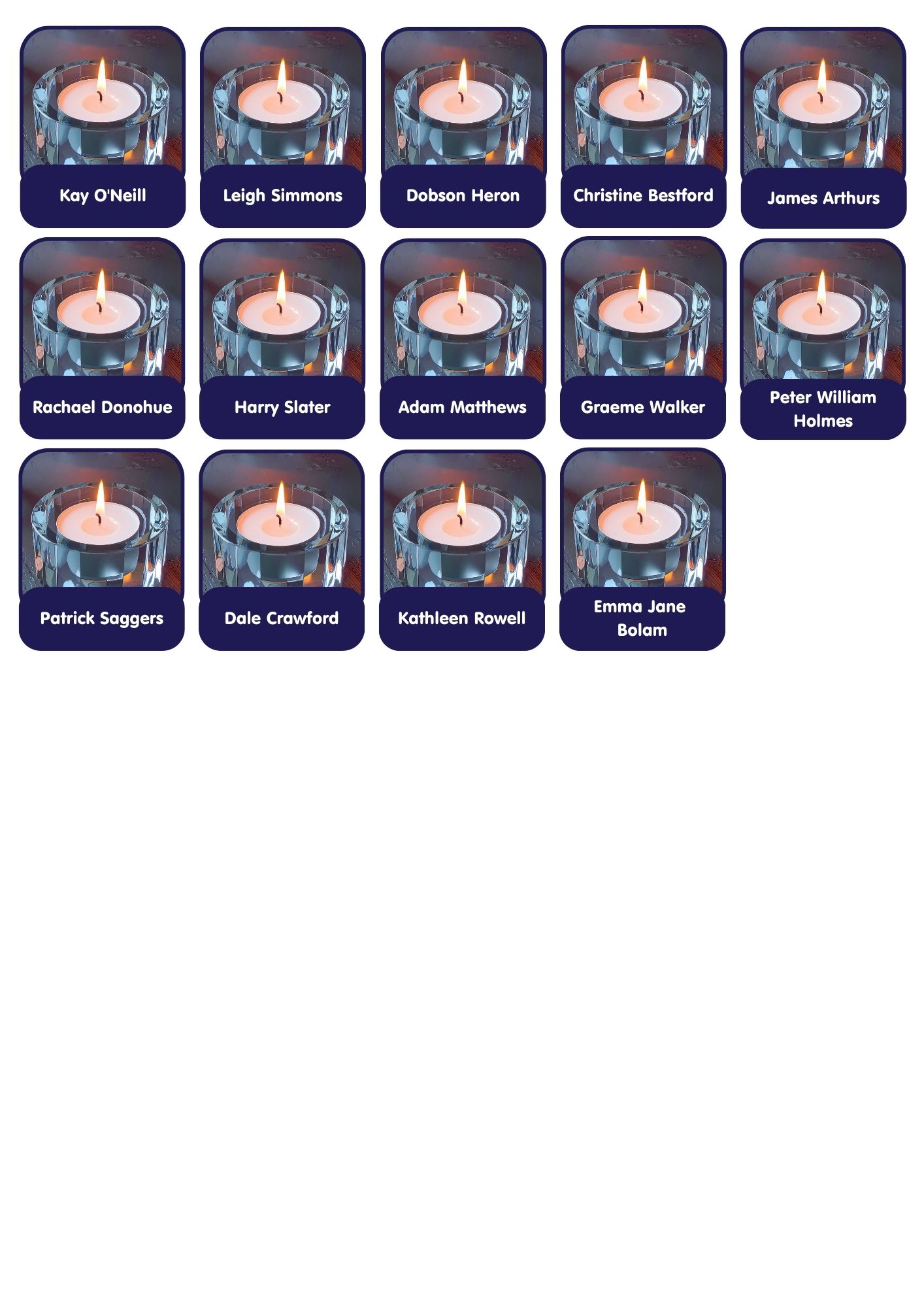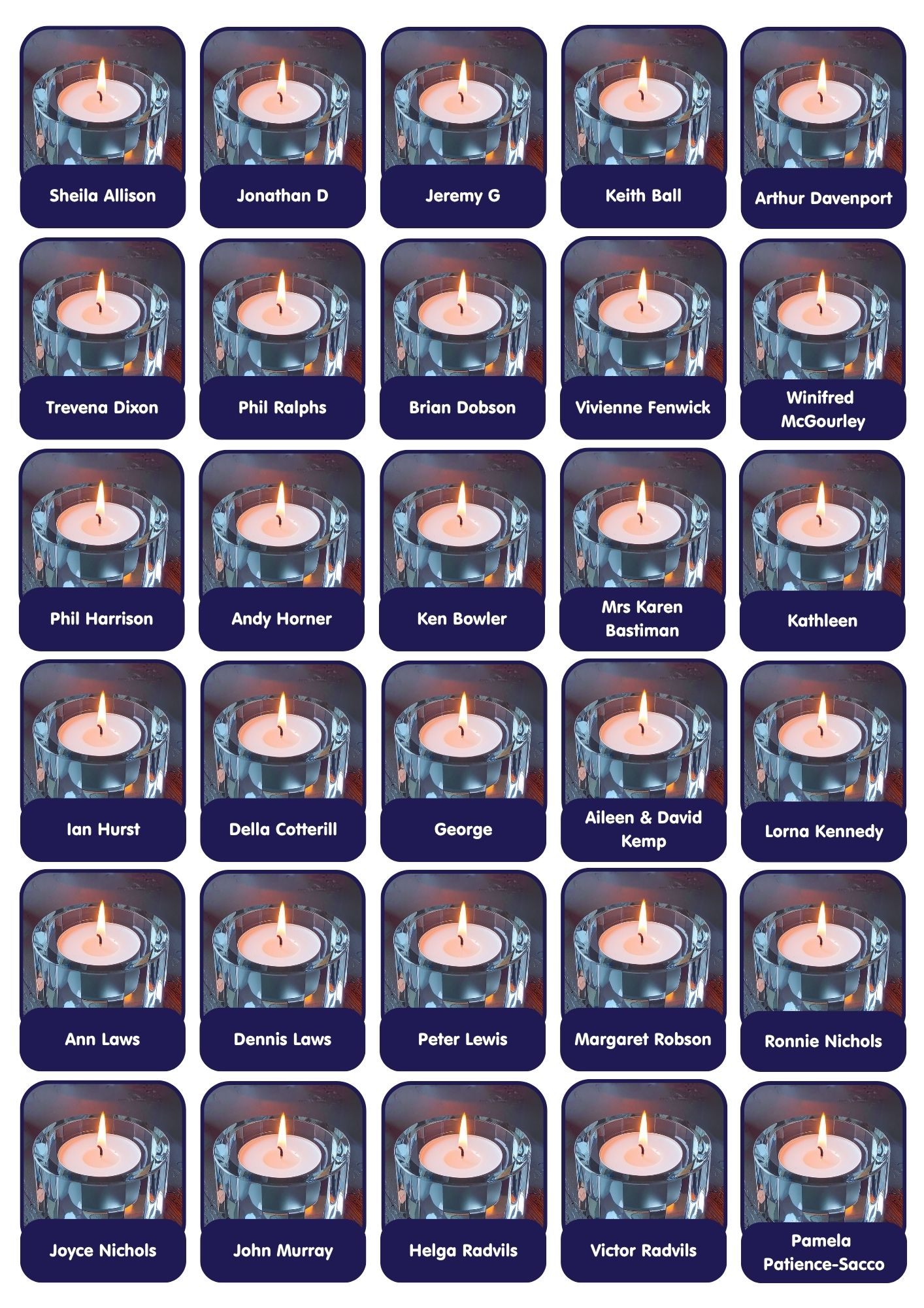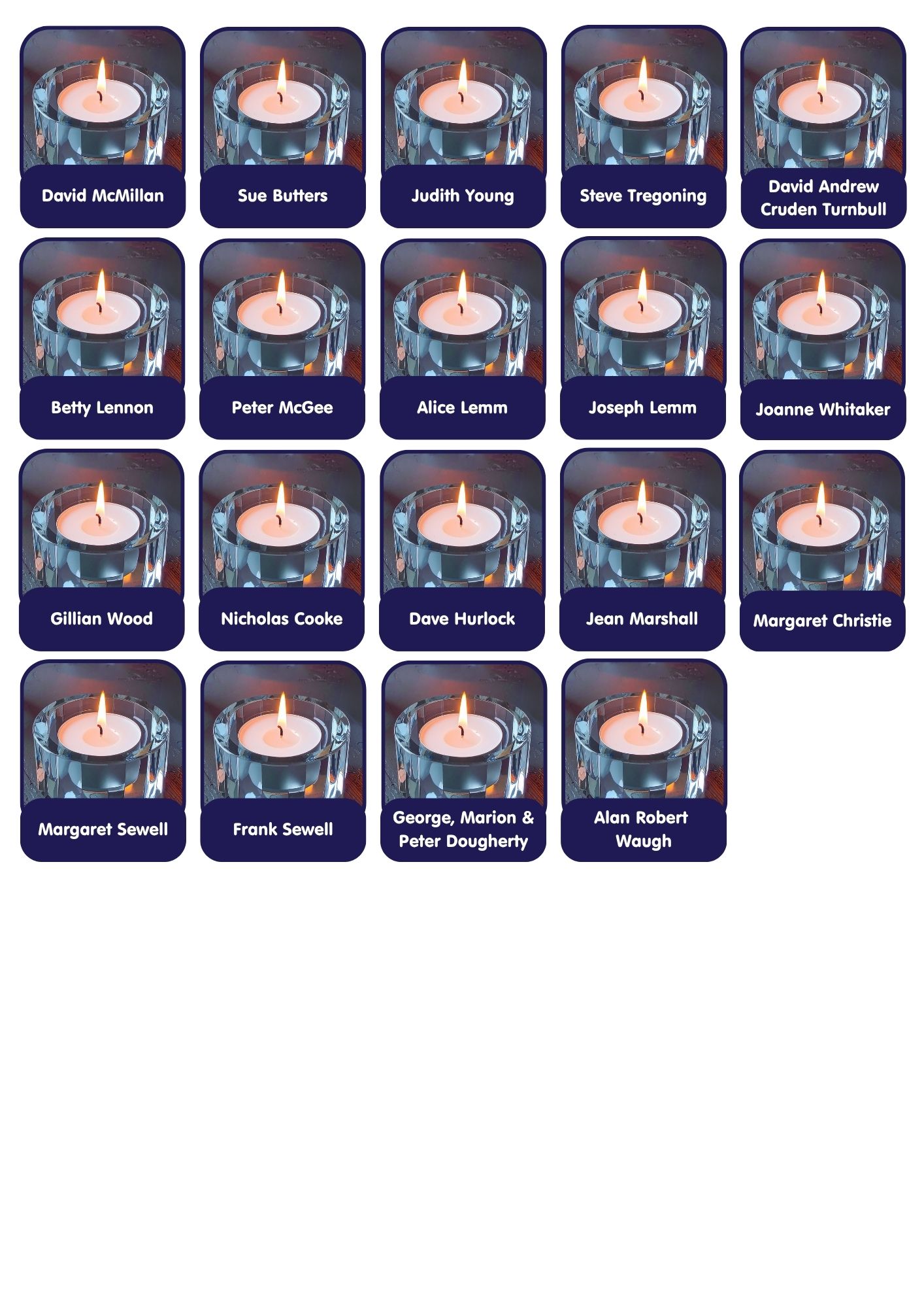 Candles are added to this page weekly. If you need to contact us relating to your candle, please email hello@stcuthbertshospice.com