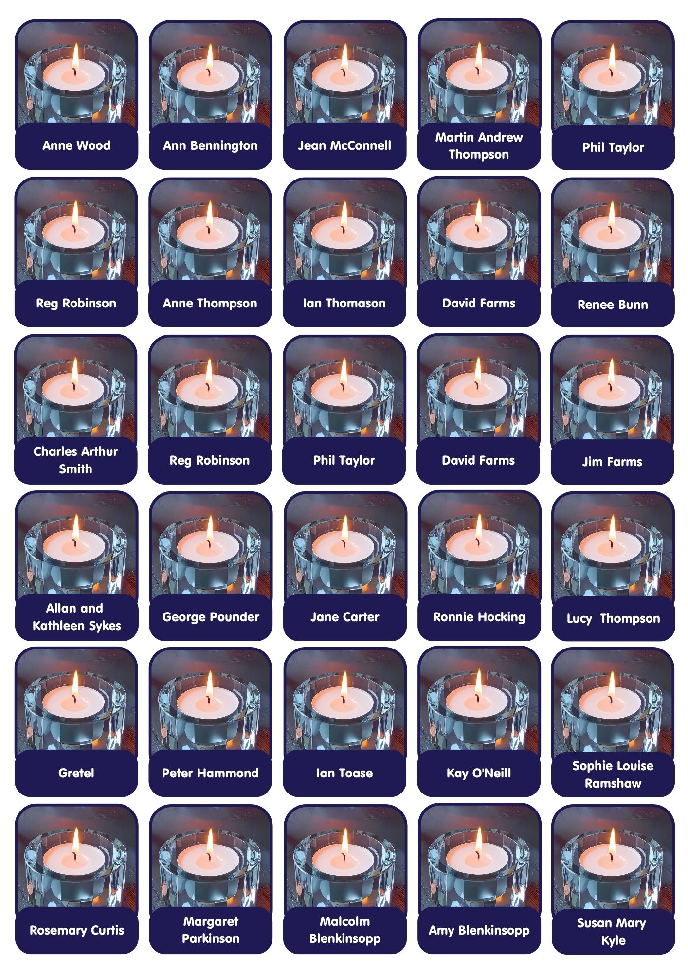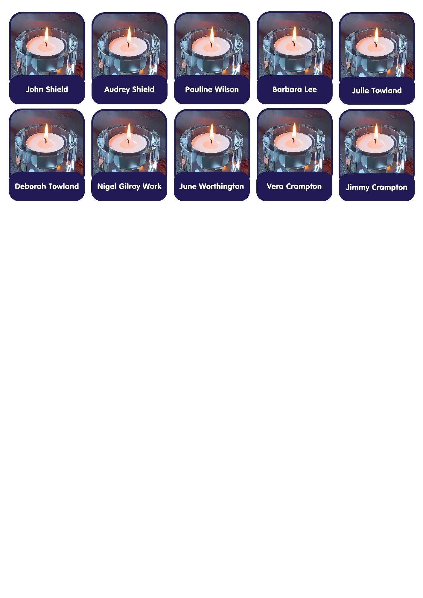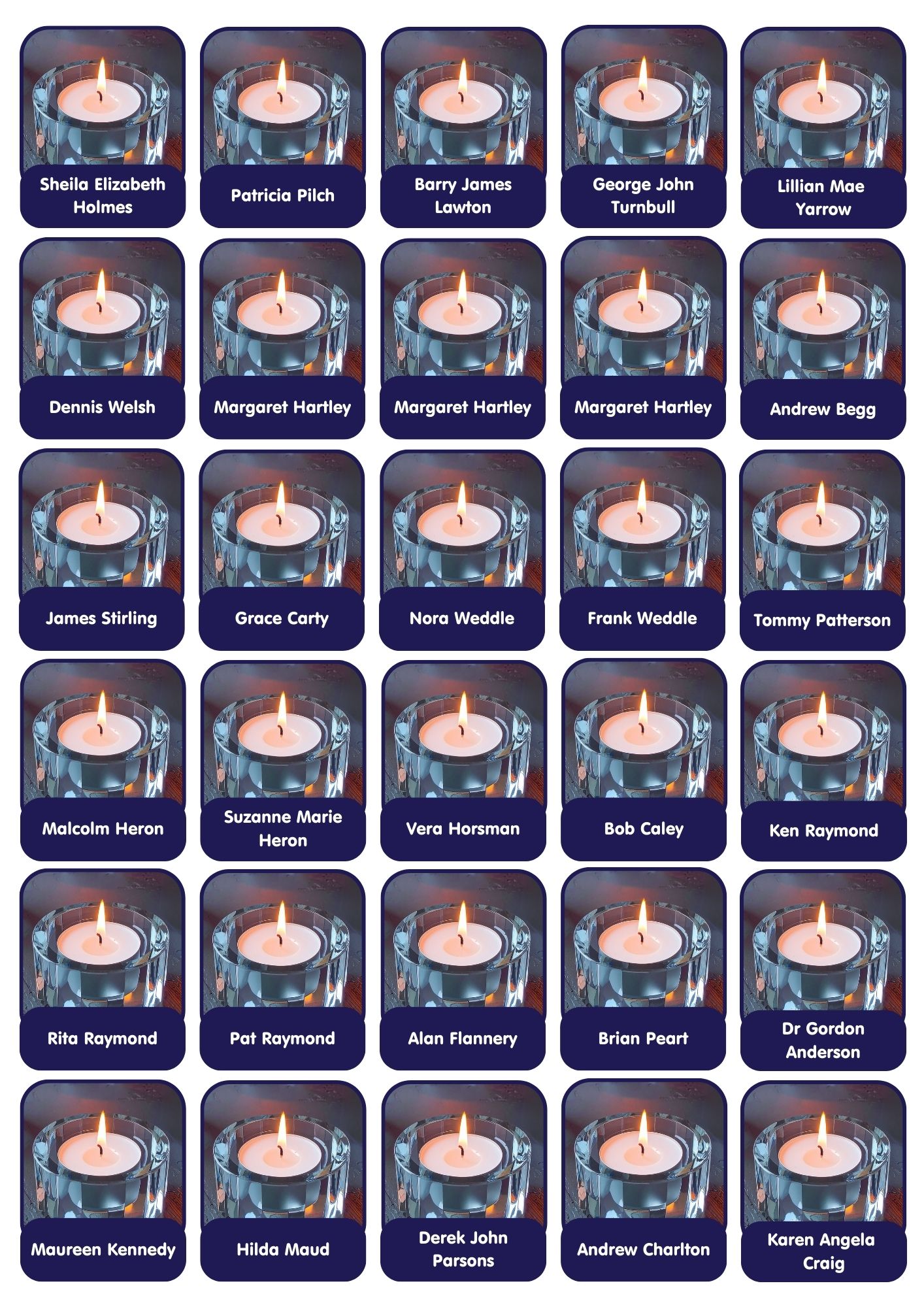 Candles are added to this page weekly. If you need to contact us relating to your candle, please email hello@stcuthbertshospice.com