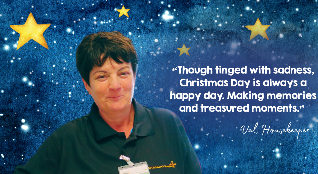 This Christmas, just like all the Christmases before, will be a very special day for all who spend it with us at St Cuthbert’s Hospice. Decorations will be hung, trees will be trimmed, presents will be exchanged, crackers will be pulled, and our nurses will do all of the little things they usually do to make sure it is a day filled with treasured memories.