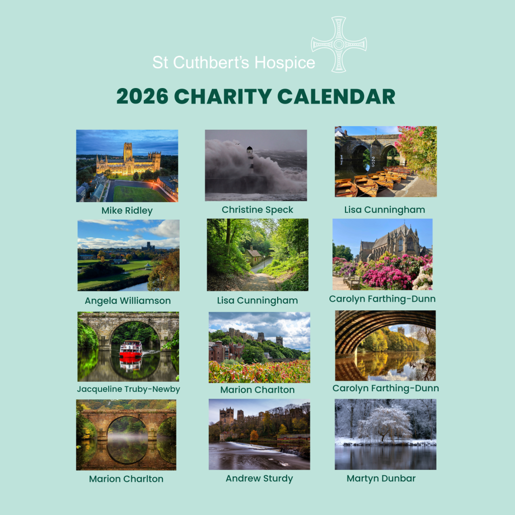 Our popular St Cuthbert’s Hospice Calendar 2026 with 12 photographic postcard images of beautiful scenes in County Durham. Each photograph is kindly donated by members of the public.